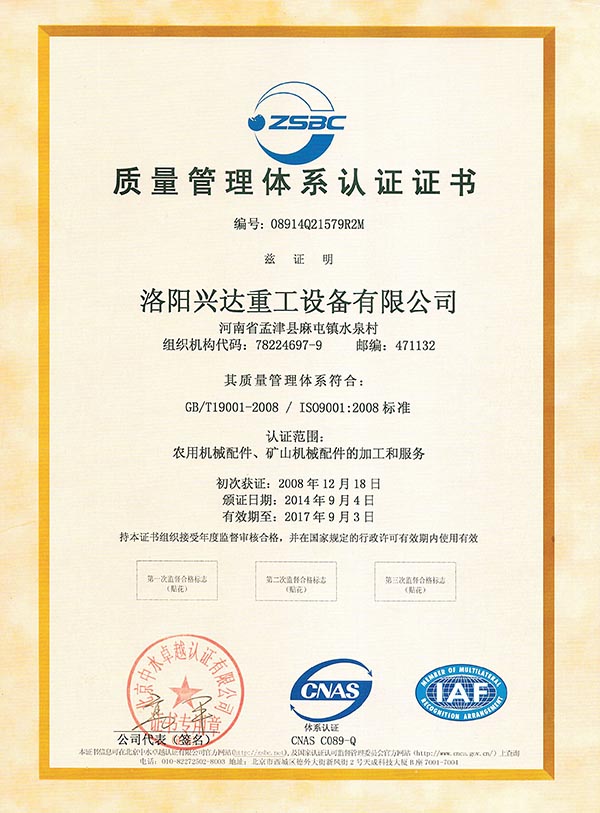 質量管理體系認證證書